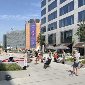 Getuigenis bij het gebouw van de Europese Commissie in Brussel Israëlische EU-ambassadeur weigert lijst slachtoffers...