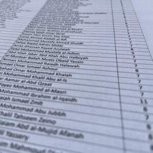 De lijst met Palestijnse namen is samengesteld door het onafhankelijke ‘Airwars’. Daarin zitten ongetwijfeld ook strijders van Hamas maar ze zijn niet apart aangeduid en dus niet te scheiden van de duizenden burgers. We maken daarin geen selectie.